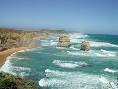 Pictured here is two of the 12 Apostles. The site of the 12 Apostles is one of the most remarkable sites I have ever seen. You have not lived until you visit and see the grandness and majesty of these natural wonders.