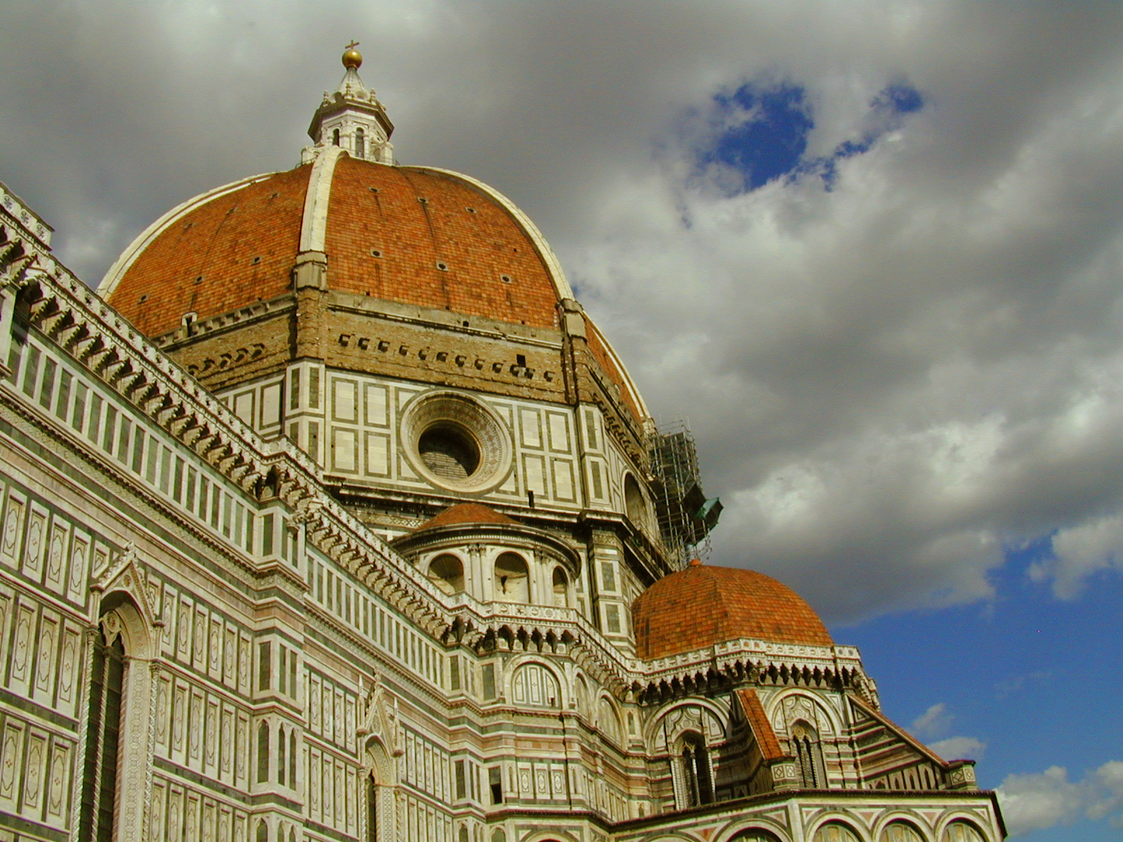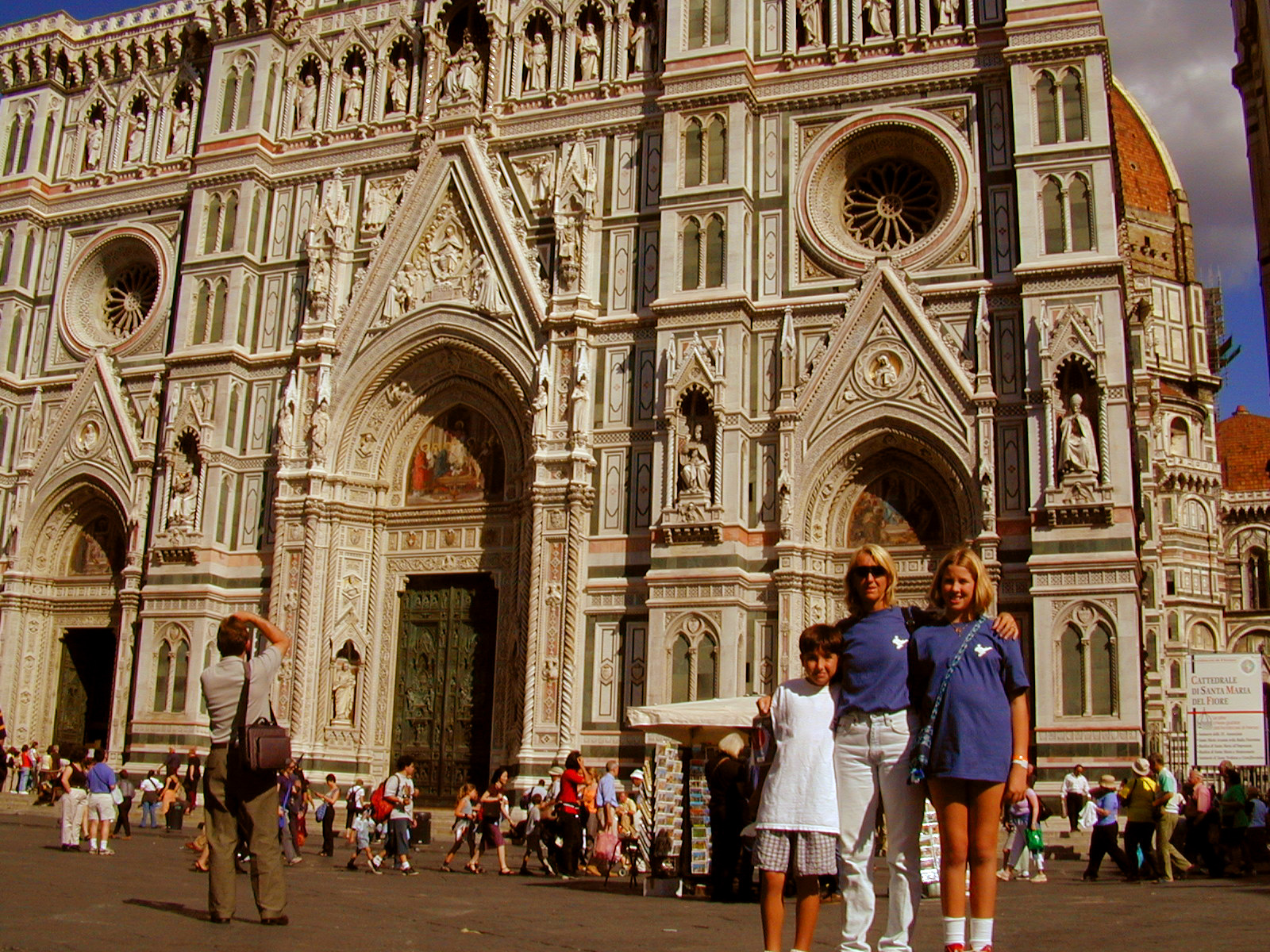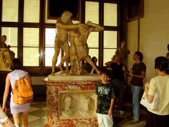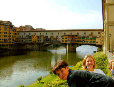 We head down from Scarperia to Firenza. On the way I stop and look at some of the terraced vineyards along the way. Late September is harvest time here in Tuscany. The countryside is covered in grapevines and sunflowers. Each town I pass through has a church. Many have castles dating back to the 1200's. Many towns have shops selling fruits and vegetables, a meat market, a bakery, and all the individual specialty shops for the people to buy the fresh items for dinner each day. The Tuscan countryside looks as though it hasn't changed in the past 500 years. Most of the buildings are stone and some of the bridges must have been built by the Romans back 2000 years ago.