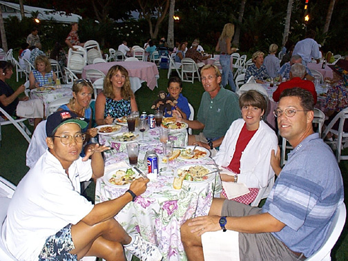 Pictured here at the Orchid Mauna Lani tournament is (counterclockwise from 6) Mike and Shannon Heisler, Jamey Wilson, Ian Cooke, Kim Carpenter, Pam Cooke, and unknown other.