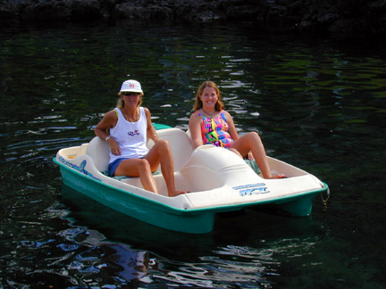Pam and Aryn relax paddling around the inlet at the Hilton Waikoloa on the Big Island while Ian trains at the Area Training Center.