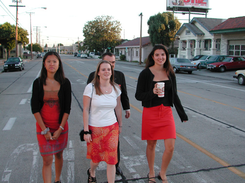 Walking down the street at 6am to go to "The Hut" for drinks.