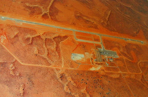 Pictured is the new airport at Ayers Rock. An old airport, run by a gentleman named Connellan, ran flights in and out of Ayers Rock since 1959. See story below.