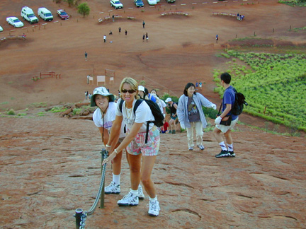 We get up at 4am to make the half hour van ride to the "Rock" to watch sunrise before the climb. Some coffee and what seemed as though it would take forever finally came about with with the temperature rising from a mere 70 degrees to 105.
