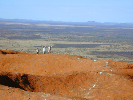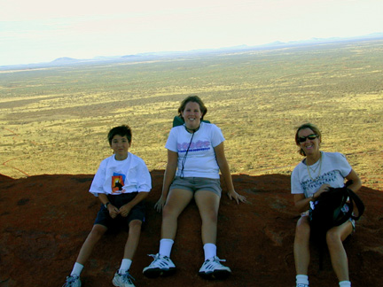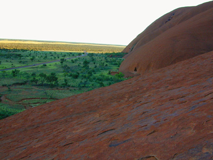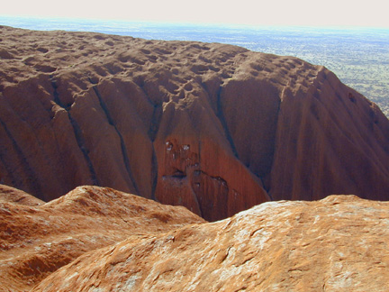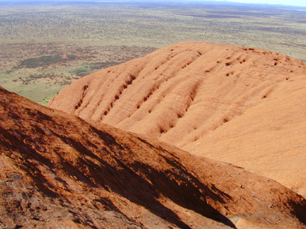 Our first view of Ayers Rock from the plane. What is really is a shock is that Ayers Rock is just that; a giant rock. As hard as granite and one solid piece of rock sticking out of the ground for millions of years. As I understand "Uluru", the rock, was created when the ocean was in central Australia. Billions of years of sedimentary deposits high in iron settled hardened. Mountains pushed