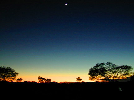 Sunrise in the desert. The moon shines down over the desert with Jupiter bright in the sky below not wishing to be to be forgotten.