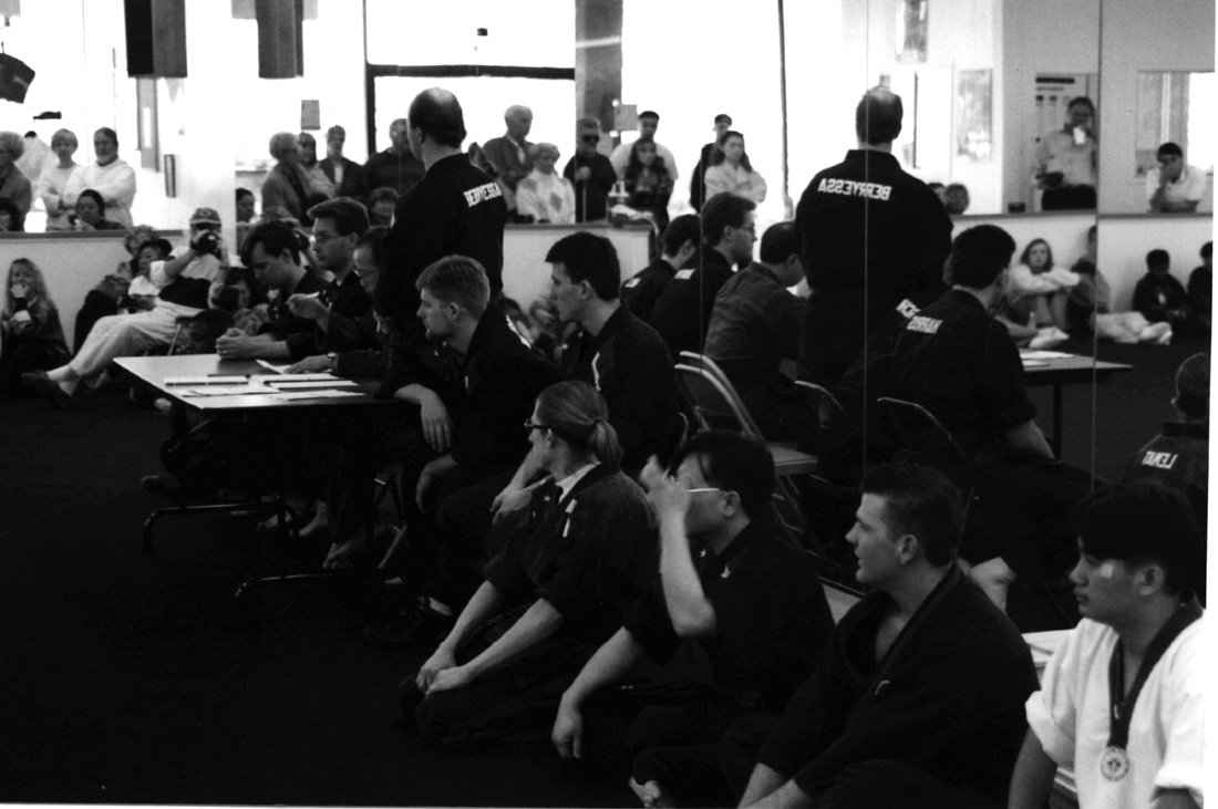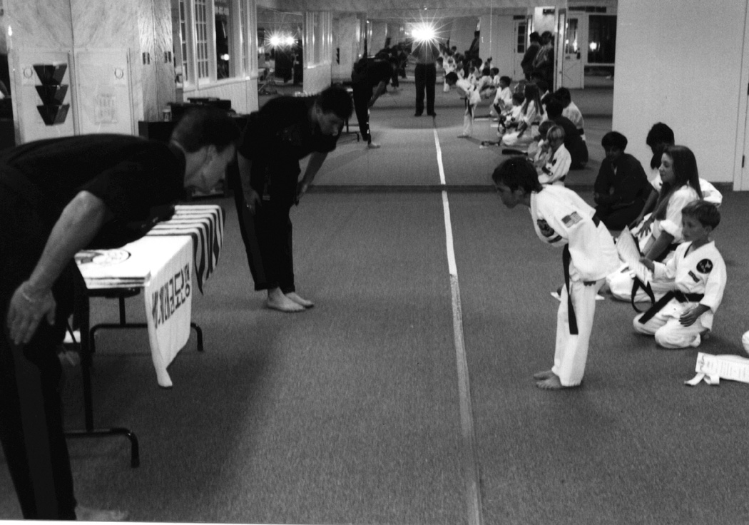 | An end to six hours of conditioning. Now comes the test in front of the black belt masters. |