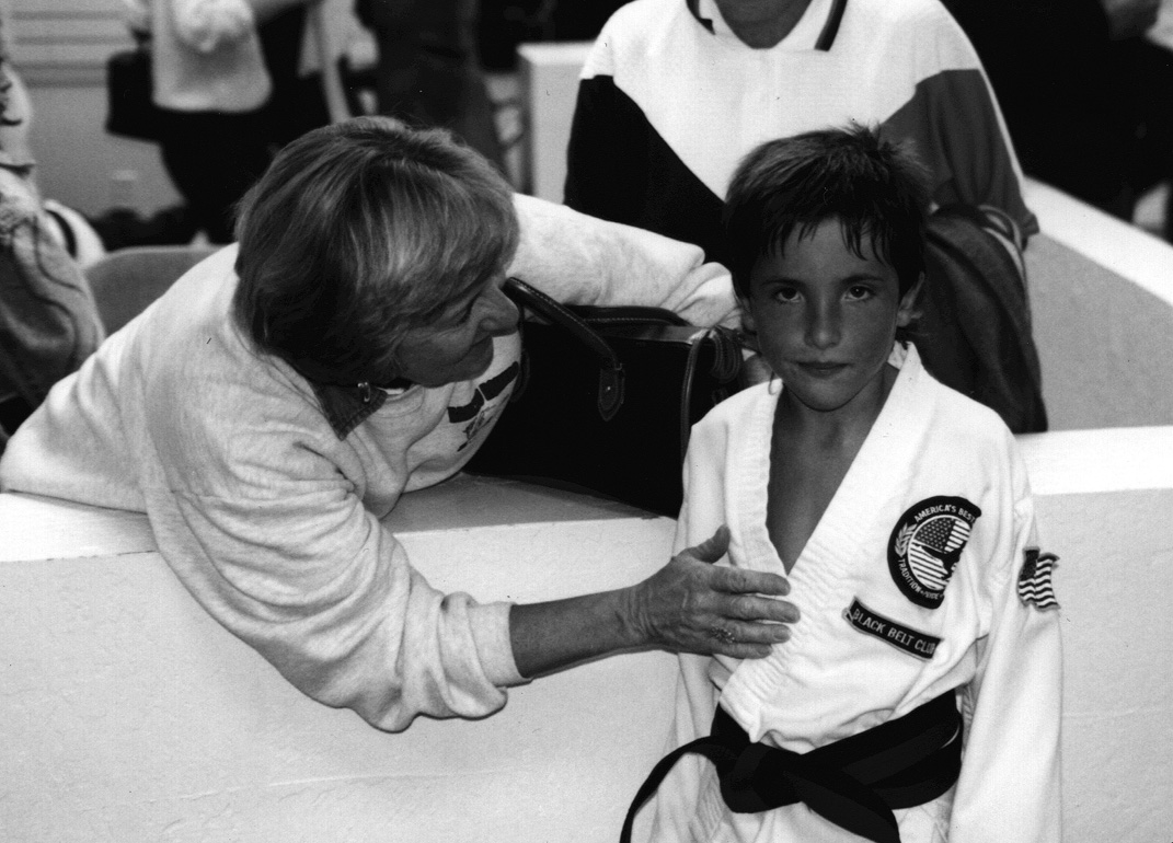 | Mr. James Harris congratulates Ian in receiving his black belt |