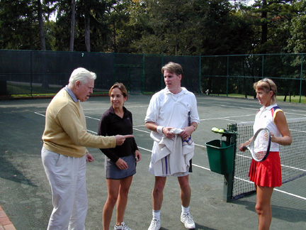 | Made it to New York. BACK TO HOME PAGE TO THE CILETTI'S DINNER AT SLEEPY HOLLOW Pam and I played Kathryn and Brendan a match in doubles. Uncle Jim, Pam, Kathy, and I then played 9 holes at Sleepy Hollow Country Club while the kids played down at the tennis club. Tonight is dinner with the family and kids. We went to see Uncle Jim and Aunt Evelyn again in August 2003. We went to the club and played tennis and dined at Amalfi's in Briarcliff Manor and at Sleepy Hollow. |