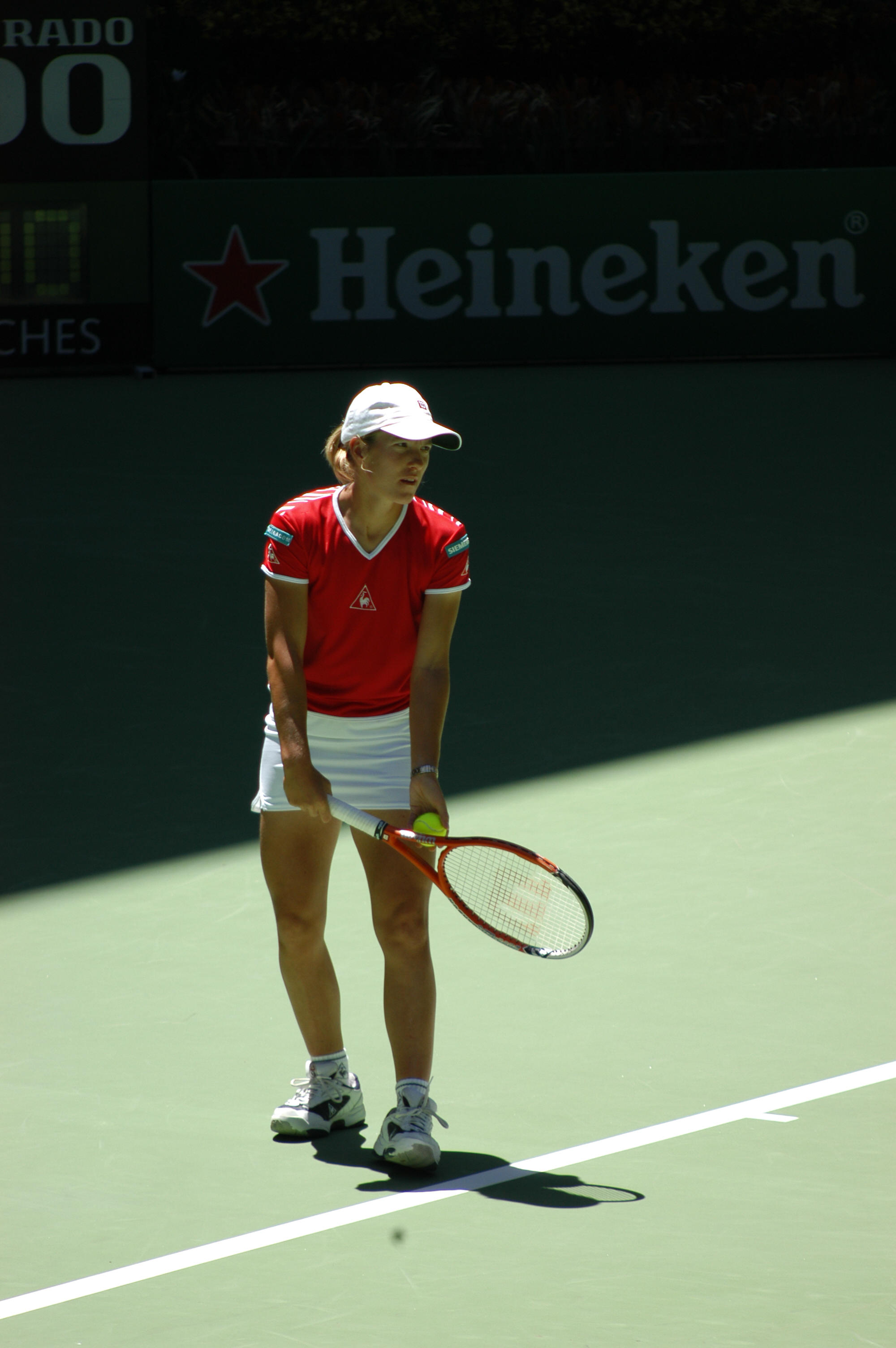 | | | | Anna Kournakova (Korn Flake) loses quickly to Justine Henin-Hardenne 6-0, 6-1 in the second round. | The talk at the Australian Open is if Anna uses her racquet as a fashion accessory or as weapon. Anna showed pure rust in serving and hitting forehands. |