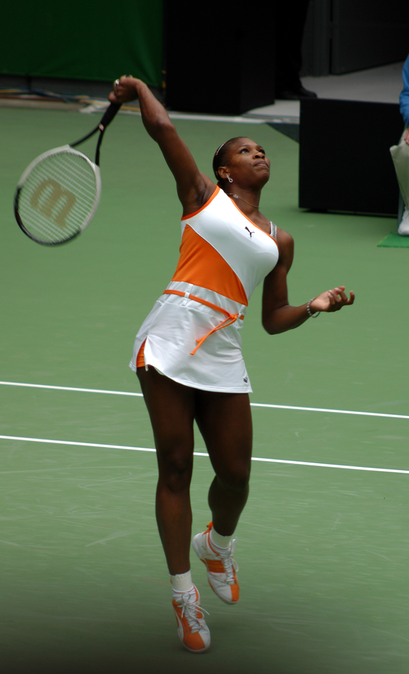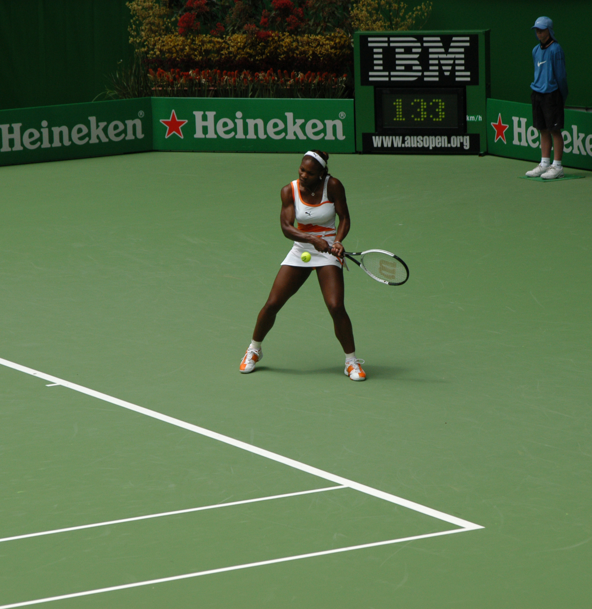 | | | | Serena shows excellent footwork. | Serena Williams does the "Serena Shuffle" after every ball she hits. It starts with the strike of the ball followed immediately by two quick steps. These steps can be to move back into the correct position on court, or a double step just to keep on her toes. The next two steps are used to either move forward into a more agressive position on the court (depending on the ability of her opponent to play the ball she hit) or a retreating step behind the baseline so that she can buy time to move forward again on her next ground stroke. |