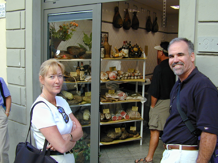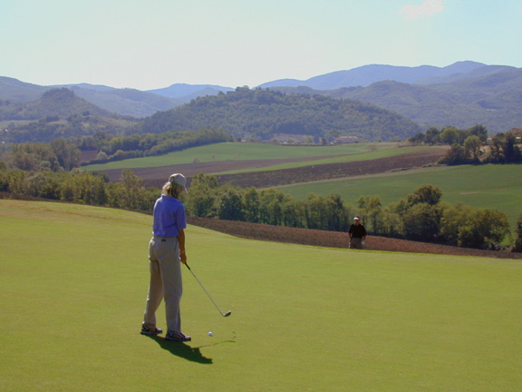 | | We checked into Sinesta Hotel at Poggio del Medici Country Club and played some golf. The country club is located on the outskirts of Scarperia. Scarperia is noted for making knives. Scarperia is another town which was lost in time somewhere. The village streets look as though they have not changed since the 1200's. We found a castle in the center of town with small shops selling knives, meats, wine and bread. The church across the square from the castle was built in the 700's. Along with the old portion of town is the newer portion. The new portion of town has a racetrack where formula one race cars, a Ferrari test track, and high speed motorcycle races are held each week. From all over the town you can hear the sounds of motors going through their gears at high speed and the sounds of racecars and speed bikes shifting in and out through hairpin turns of the track only to gun the engines down the straightway.