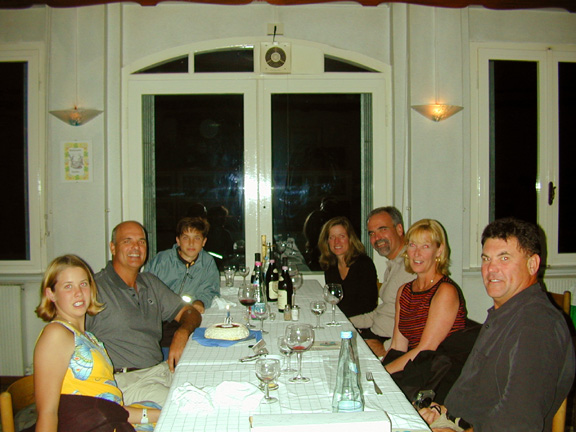 | | The town of Stresa was one of those places we could have passed on. However, I celebrated my 46th birthday with my family, my brothers and their significant others while there. We traveled to a little town on the hill above Stresa and ate a wonderful Italian dinner in a restaurant with just the eight of us. The earlier part of the day was spent playing tennis right on the lakefront with Pam, Ian Jack and I. The rain held off just long enough for us to get two good sets of doubles in. Denis and Sally went on a quest to find just the right watch for Denis in Switzerland. |